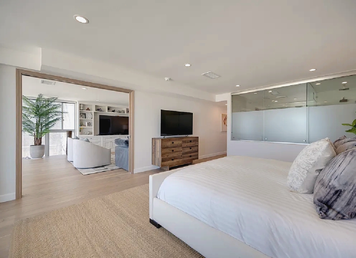 Open-plan living areas with comfortable furnishings, a well-equipped kitchen, and a private balcony overlooking the marina create a peaceful setting for a relaxing stay; guests can enjoy easy access to waterfront dining, boutique shops, and boating activities just steps away, making it a convenient and inviting retreat for anyone seeking calm marina views and a well-located coastal getaway in Marina Del Rey.