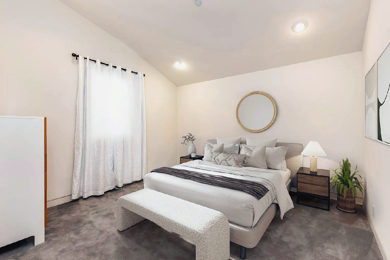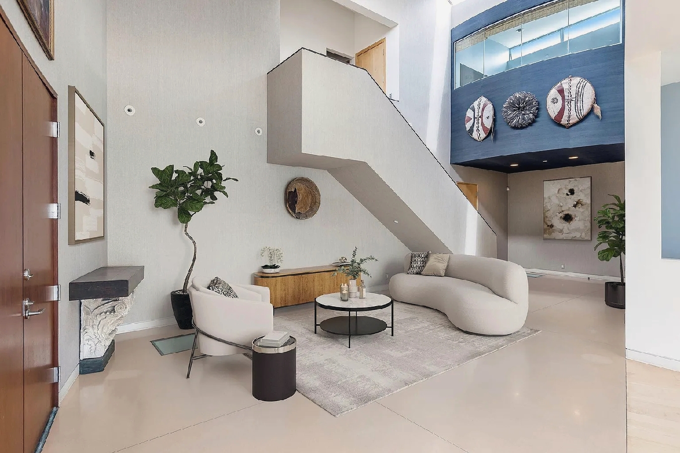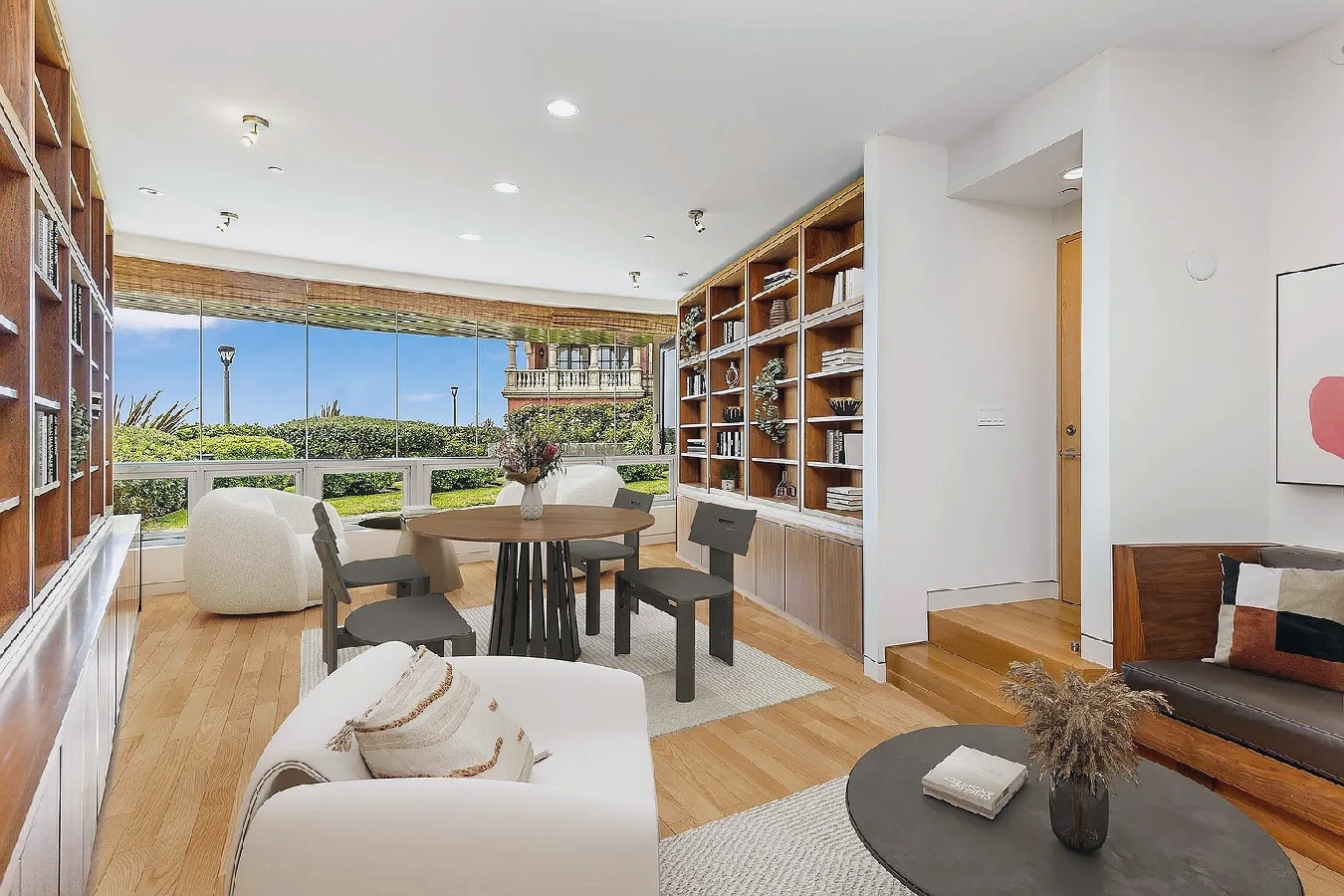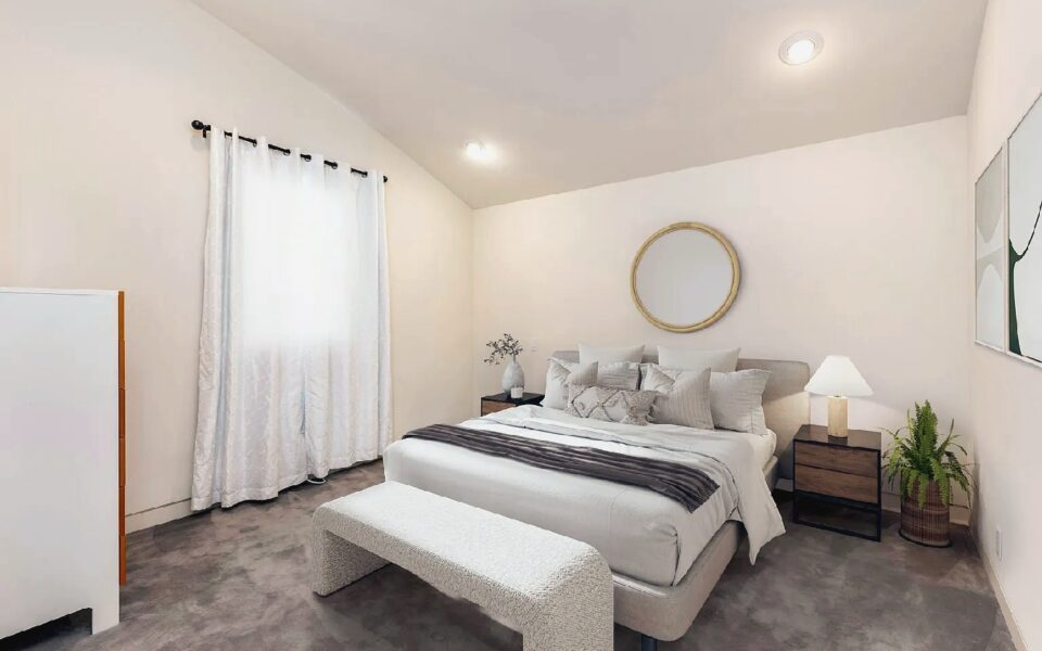 Floor-to-ceiling windows and curved architectural lines fill the spacious interior with natural light while showcasing sweeping views of the Pacific and sandy shoreline; a well-equipped kitchen, generous living areas, and refined modern furnishings create an elevated coastal atmosphere, and guests can step outside to enjoy the beach or walk just a few blocks to nearby cafes, shops, and seaside dining, offering an ideal upscale retreat for families or anyone seeking a polished and memorable Manhattan Beach getaway.