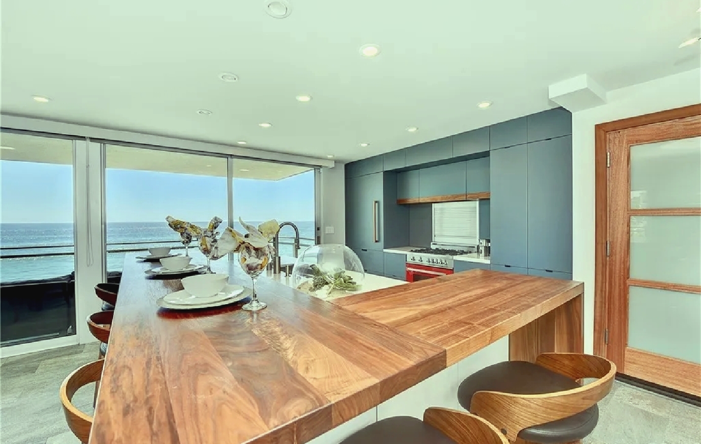Must see to believe this one of a kind combination of the ultimate beachfront location and spectacular views. Feel crashing waves from the huge wrap around deck overlooking the incredible Bluebird Beach. Enjoy glorious sunrises while watching surfers brave the majestic rock outcropping from your oversized master bedroom, and toast the sunset over Catalina Island in the evening. This total remodel is luxury beach living at its finest. Features spa-like bathrooms with heated floors and towel warmer, full size laundry, and a gourmet kitchen with massive island. Perfect for entertaining. This roomy three bedroom two and one half bath home is sure to wow. MORE: Automated, Alexa and/or mobile app controlled devices throughout such as smart thermostat, lighting, security system, interior and exterior cameras. Most home functions controllable from your mobile device or by voice commands to the Alexa device. Full home alarm protection. Custom storage and closets throughout. Handmade cabinets of walnut and high gloss white. Kitchen boasts deep pull out pantries, cabinets along entire wall, high end newer appliances, massive island with storage all the way around. Master closets are all custom designed and constructed. Has a custom, revolving shoe closet and a hidden office with slide back doors and a drop down desk so you can gaze at the waves while you work.