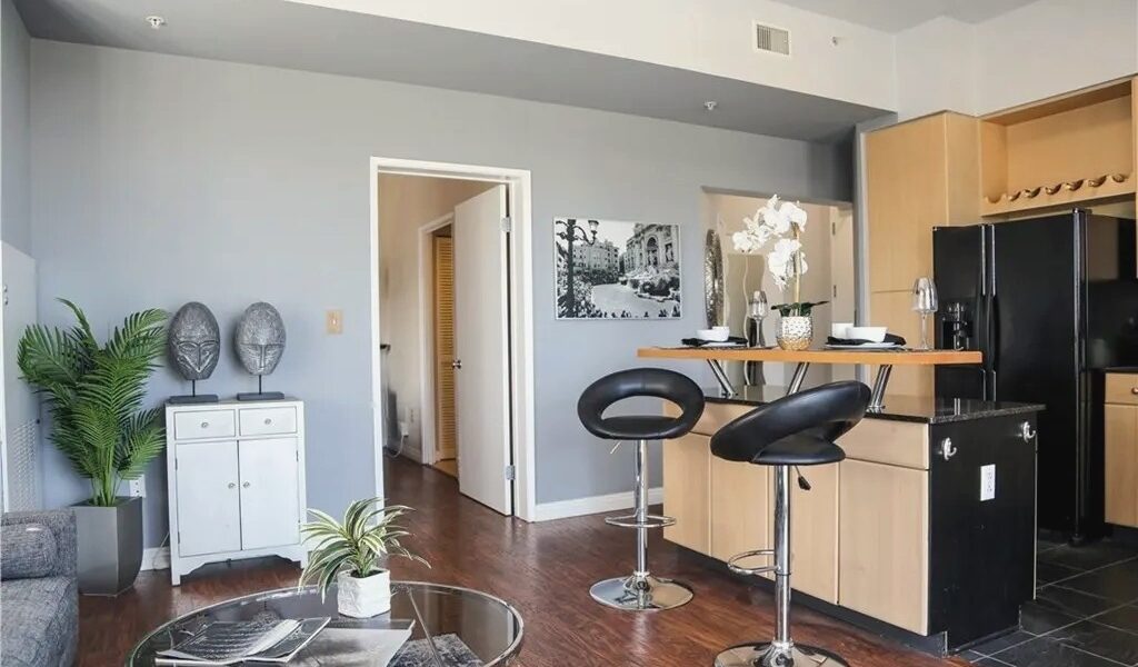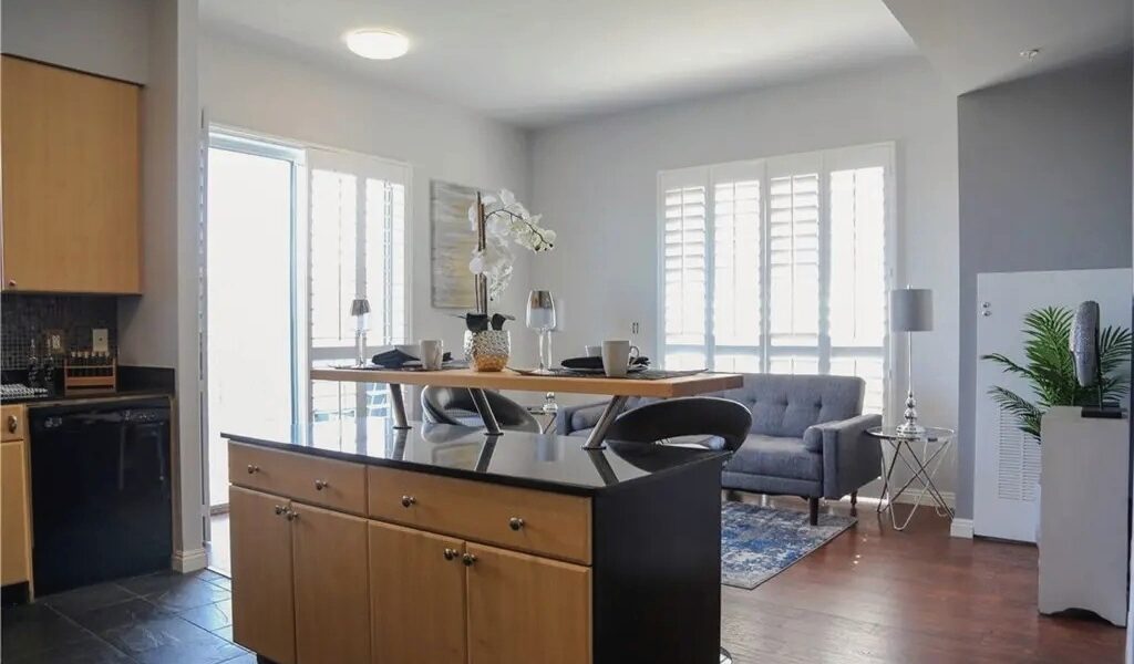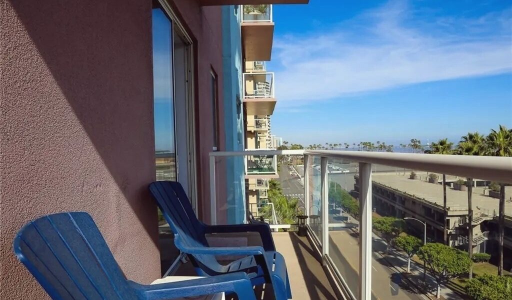 Beautifully updated 1-bedroom, 1-bath end unit at The Aqua Towers featuring an L-shaped wraparound balcony with panoramic views of the Long Beach coastline, marina, and ocean. The condo includes hardwood-style flooring, a modern kitchen with granite countertops and stainless steel appliances, and a spacious bath with an oversized tub. Additional features include plantation shutters, central A/C, and in-unit washer and dryer. Residents enjoy resort-style amenities such as a pool, spa, gym, business center, outdoor grill area, sun deck, and 24-hour concierge service. Ideally located near Shoreline Village, shops, and restaurants, this home combines style, comfort, and coastal convenience.