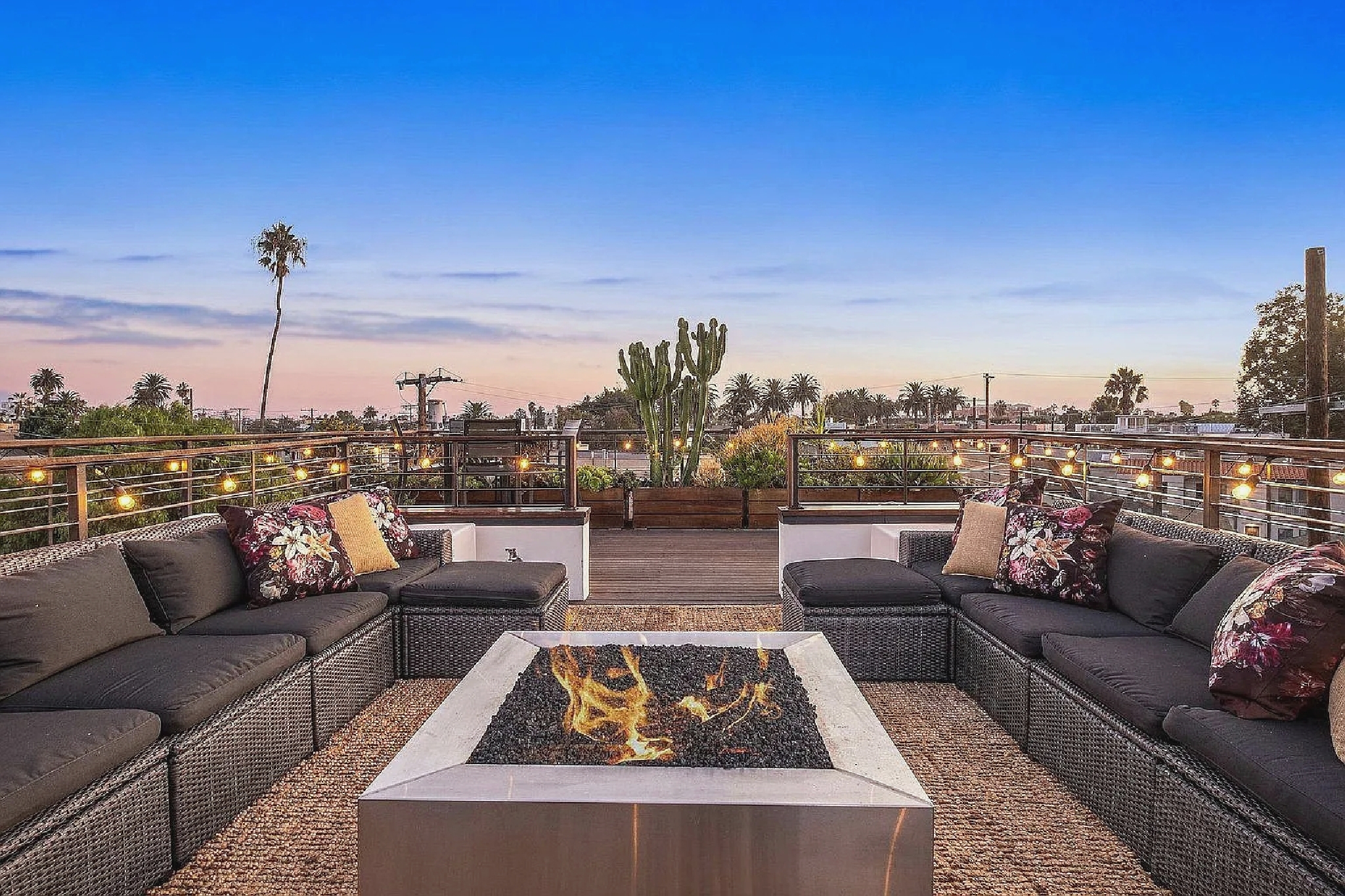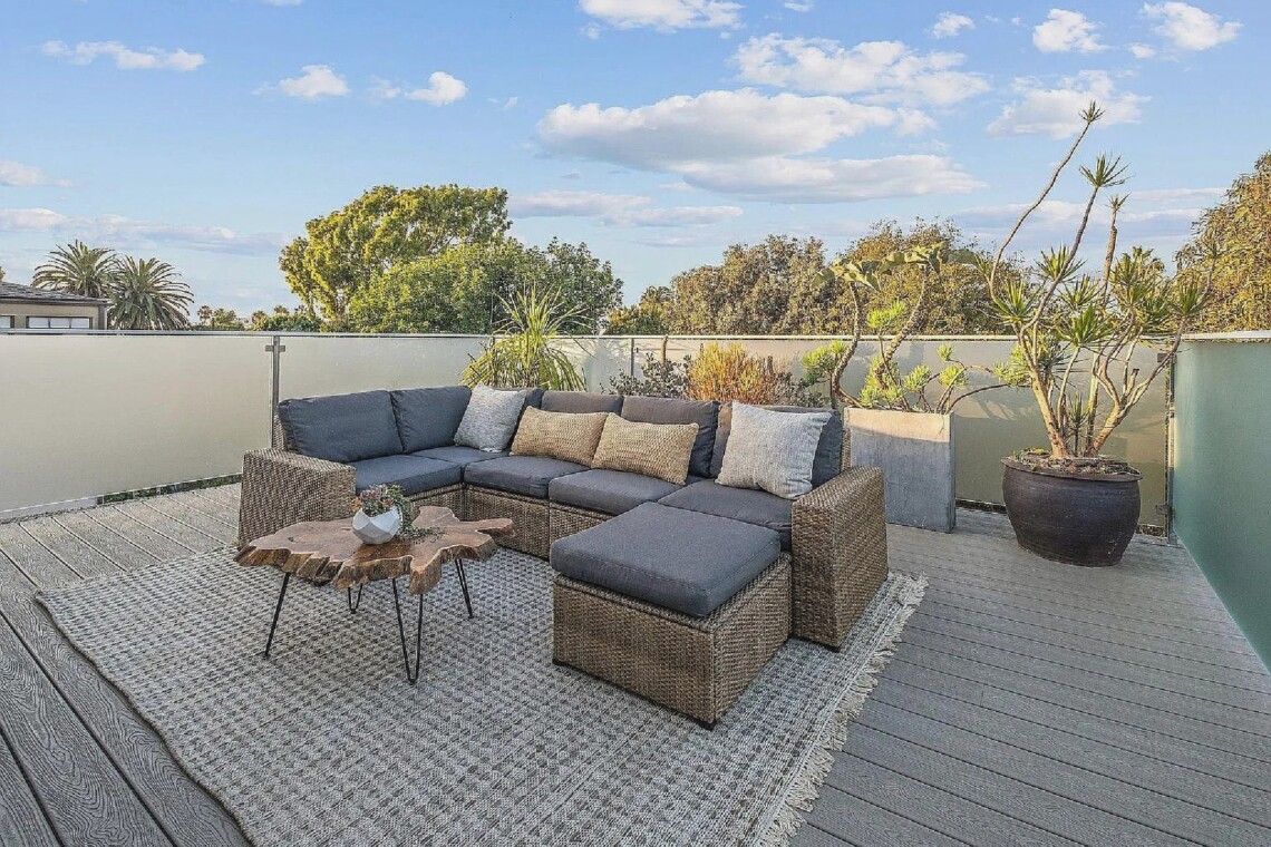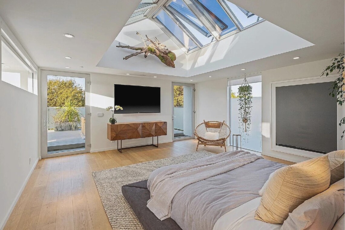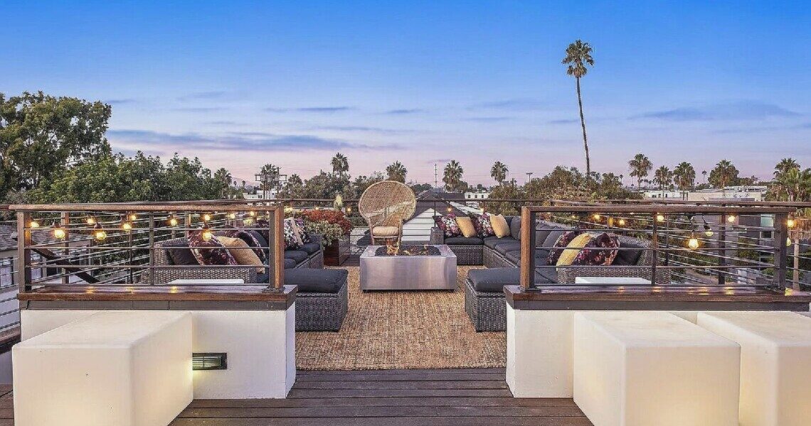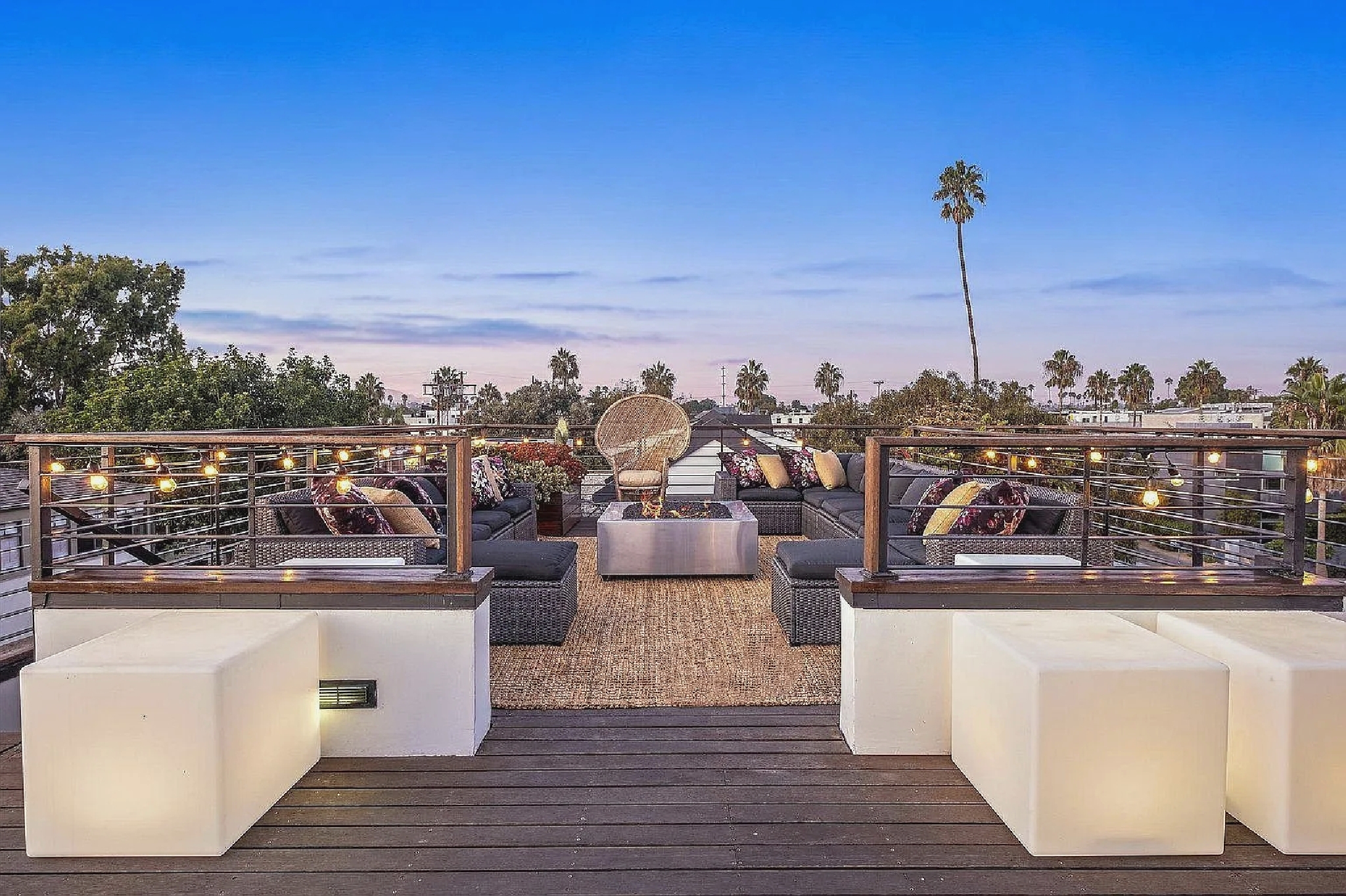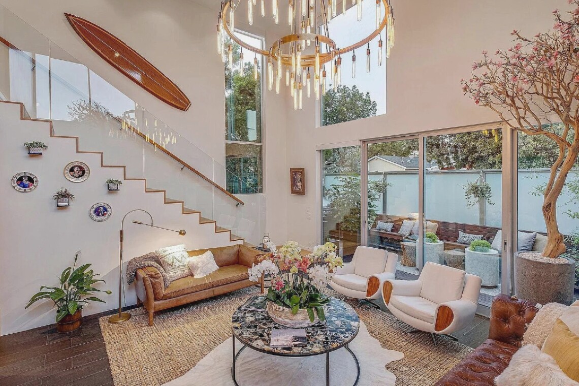 This three bedroom, three bathroom home offers more than 3,500 square feet of modern living space just steps from the shops, galleries, and restaurants of Abbot Kinney. The residence features soaring ceilings, hardwood floors, and a dramatic two-story living room with fireplace that opens to a private patio for seamless indoor-outdoor entertaining. The gourmet kitchen includes Viking appliances and quartz counters, while the master retreat spans the top floor with dual walk-in closets, spa-style bath, and a private deck with treetop views. Additional highlights include guest bedrooms with a shared study, rooftop deck with fire pit and 360-degree views, outdoor beach shower, and gated entry, all in a quiet Venice Beach location.
