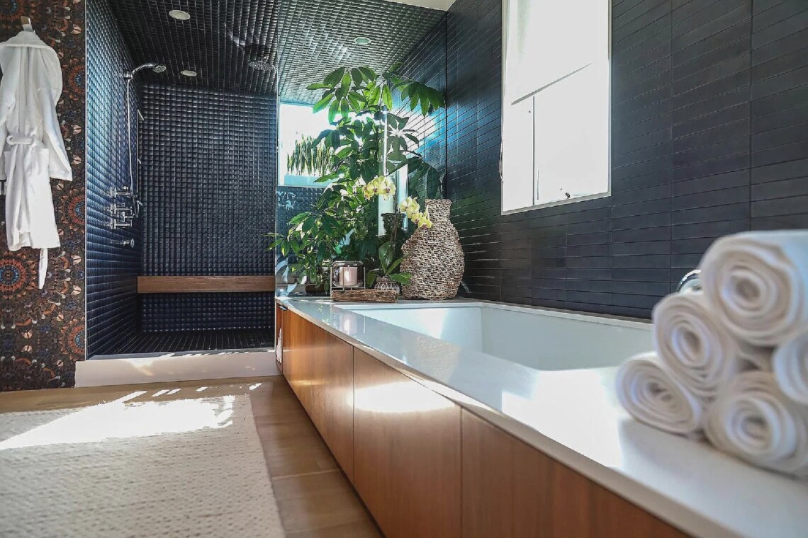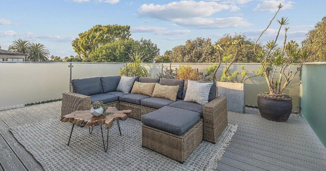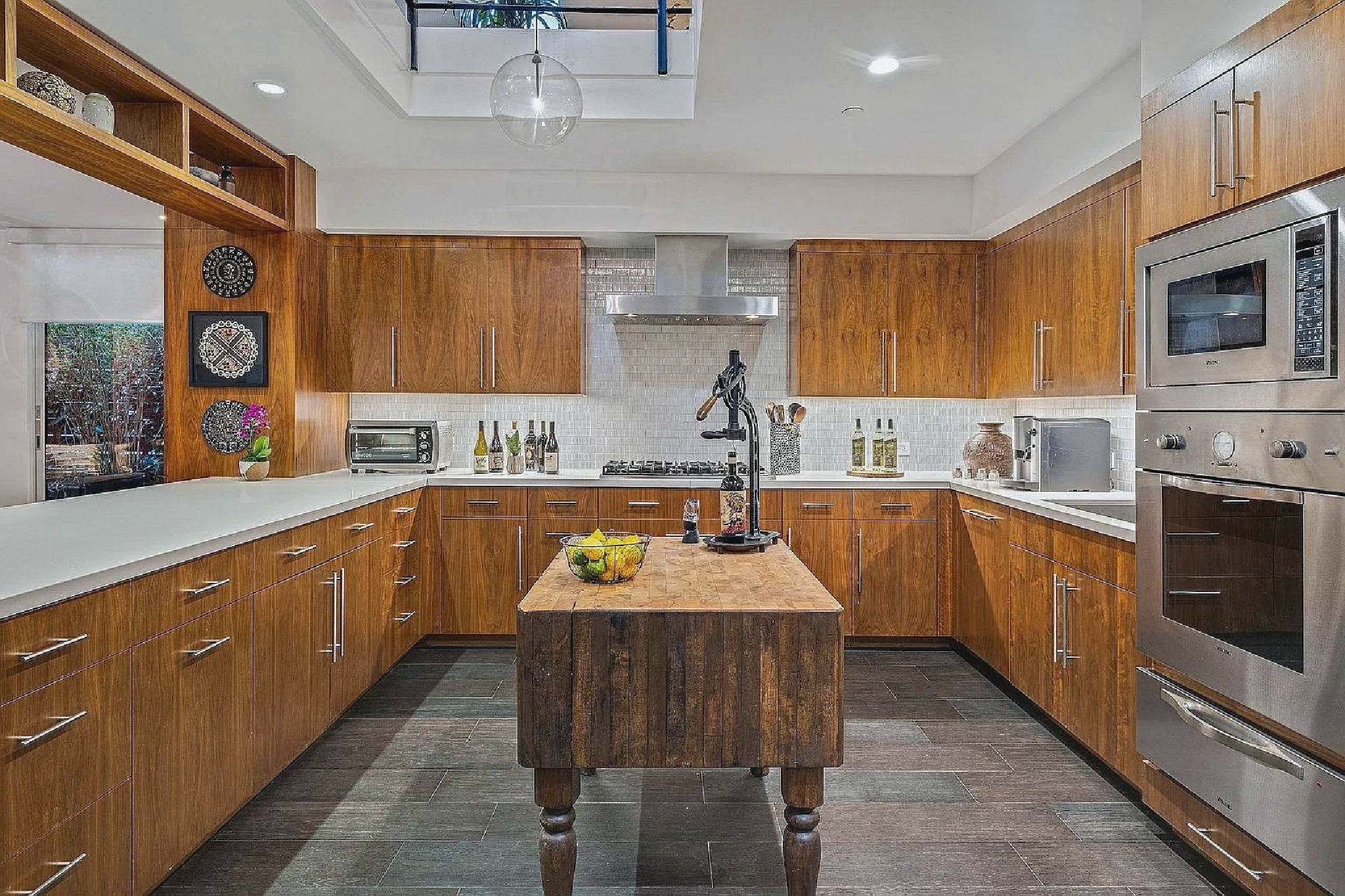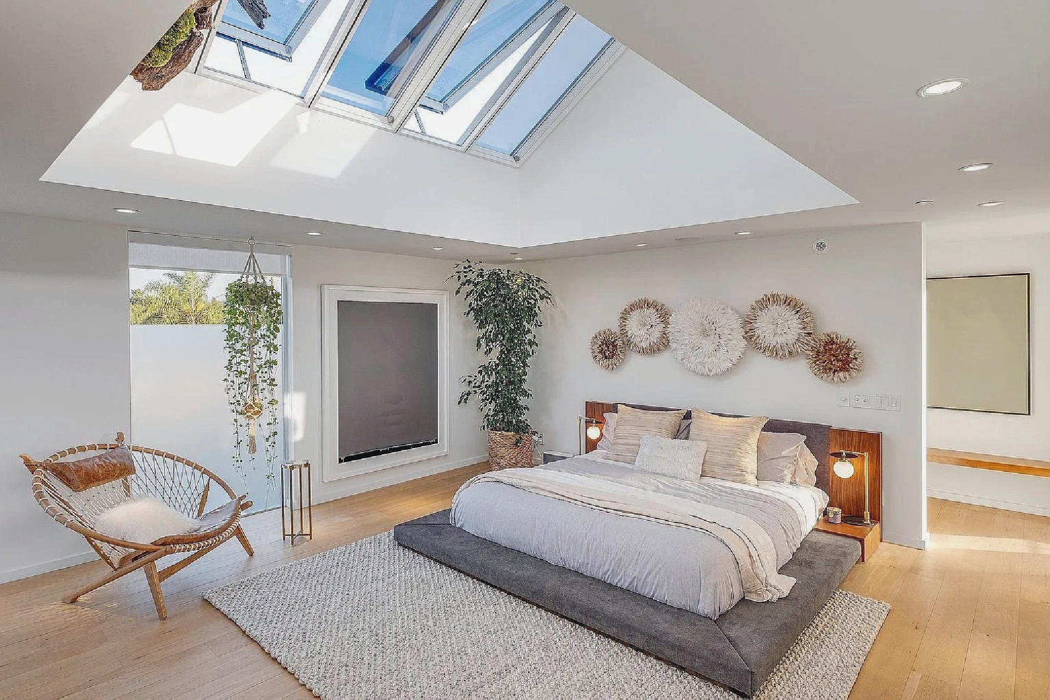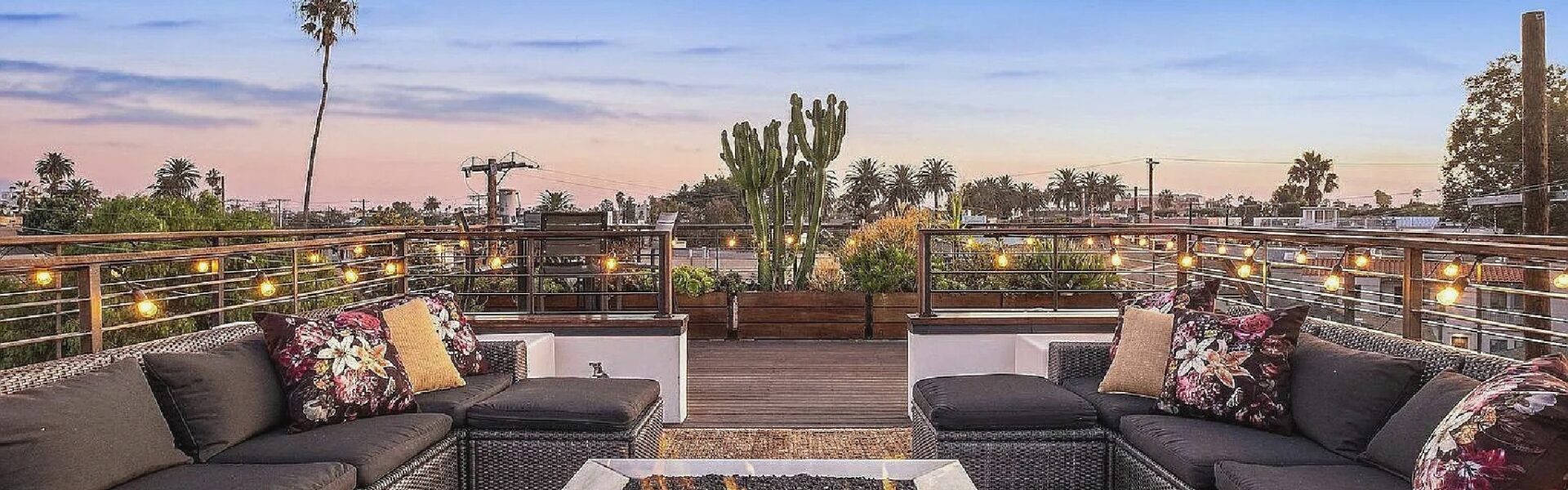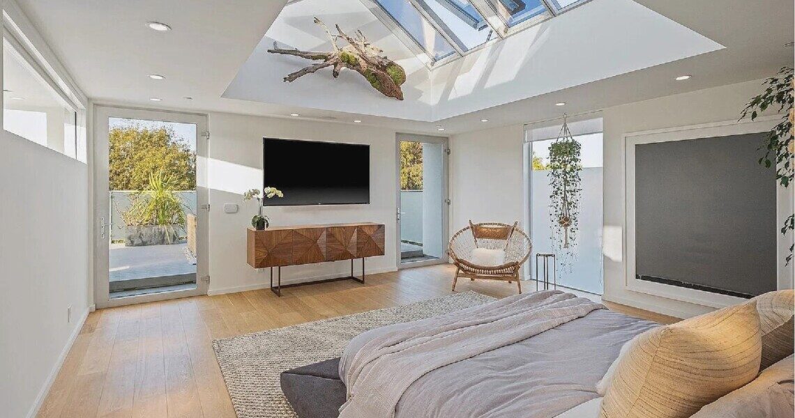 This three bedroom, three bathroom home offers more than 3,500 square feet of modern living space just steps from the shops, galleries, and restaurants of Abbot Kinney. The residence features soaring ceilings, hardwood floors, and a dramatic two-story living room with fireplace that opens to a private patio for seamless indoor-outdoor entertaining. The gourmet kitchen includes Viking appliances and quartz counters, while the master retreat spans the top floor with dual walk-in closets, spa-style bath, and a private deck with treetop views. Additional highlights include guest bedrooms with a shared study, rooftop deck with fire pit and 360-degree views, outdoor beach shower, and gated entry, all in a quiet Venice Beach location.