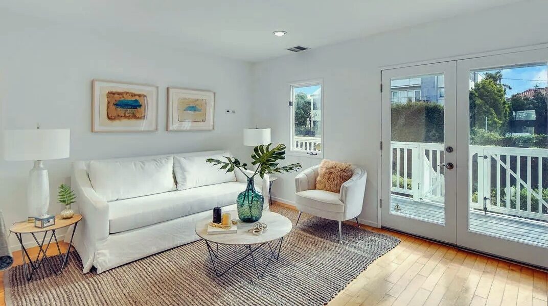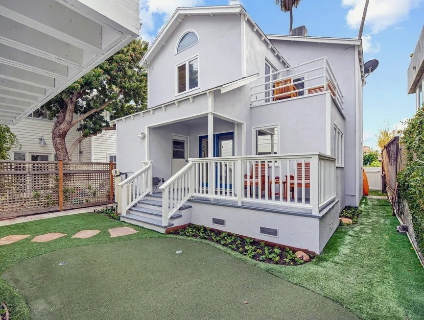This charming three bedroom, three bathroom home sits along the historic Venice Canals, offering peaceful south-facing views and sunlit mornings on the porch. The two-story residence features French doors throughout, opening to balconies and decks that invite the outdoors in. A detached studio above the garage provides two additional rooms and a bath—perfect for guests or creative space. With approved plans to expand beyond 3,000 sq ft, this property combines timeless Venice charm with rare potential, all within one of the neighborhood’s most desirable canal-front settings.