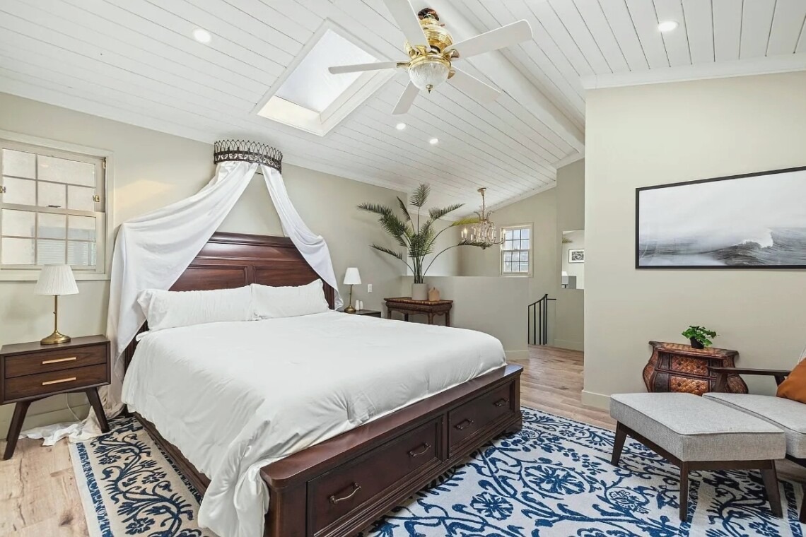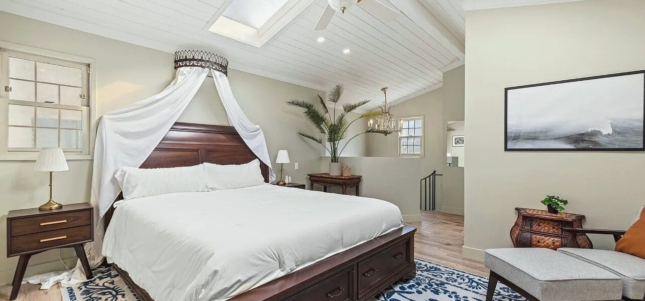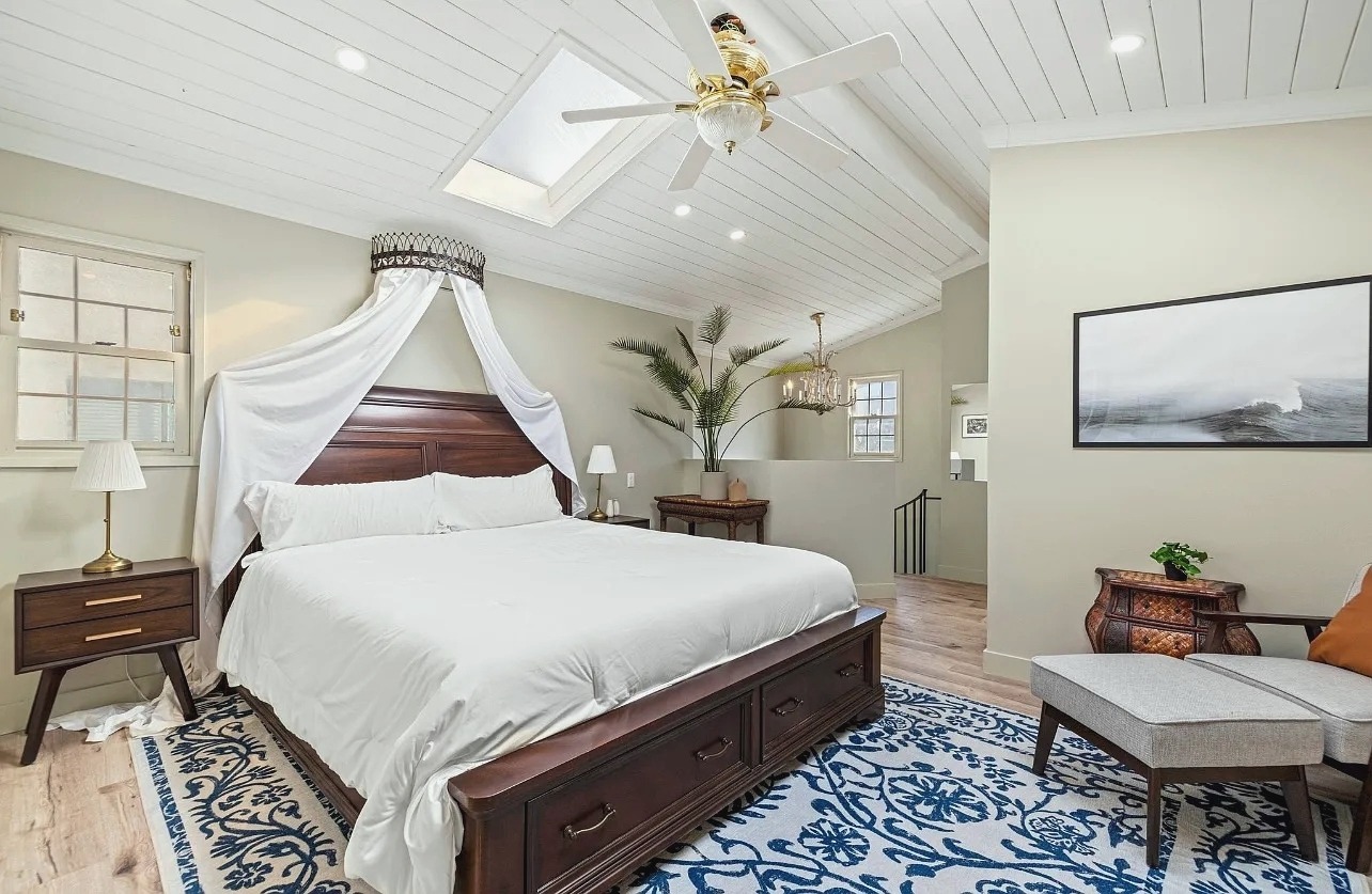 Welcome to Casa Amoroso, a thoughtfully designed 3-bedroom, 3-bath modern retreat nestled behind lush 14-foot hedges on one of Venice’s most charming streets east of Lincoln. Reimagined in 2019, this warm contemporary home blends comfort and functionality with serene outdoor spaces. The main house features airy open living areas with Fleetwood doors, a gourmet kitchen with high-end appliances, and seamless indoor-outdoor flow to a private deck and tranquil garden with a Spanish-tiled fountain. The upper level is dedicated to a luxurious primary suite with skylights, a spa-like bath, and a treetop terrace. The detached ADU includes its own bath and kitchenette, ideal for guests, an office, or creative studio. Combining privacy, elegance, and true Venice charm, this residence offers an effortless balance of modern living and coastal relaxation.