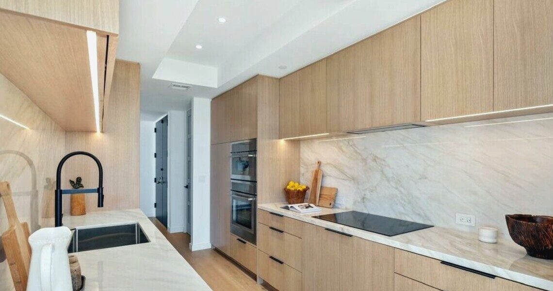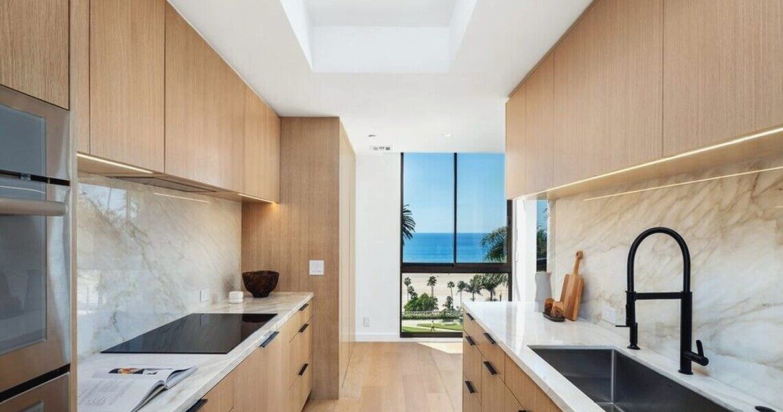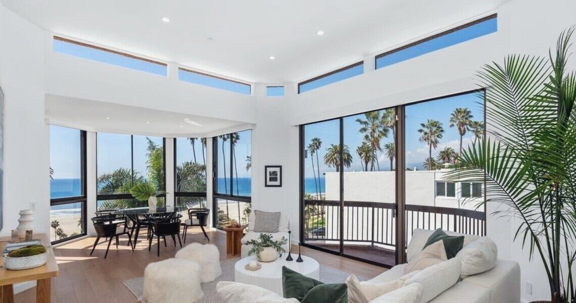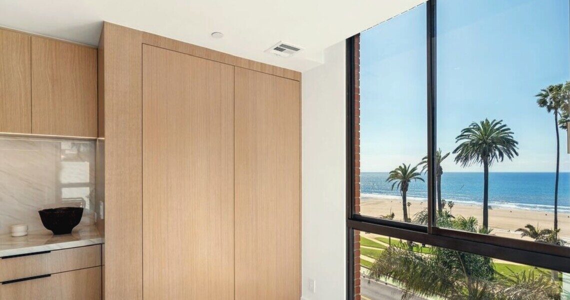 This two bedroom, two bathroom penthouse condo offers nearly 1,400 square feet of newly remodeled living space with sweeping views of the Pacific and Palisades Bluffs. The open ocean-facing living and dining area features floor-to-ceiling windows and new white oak flooring, while the kitchen includes custom cabinetry, Calacatta marble finishes, and premium appliances. The primary suite boasts a walk-in closet, spa-style bath, and freestanding tub. Set in a discreet, low-key building with side-by-side parking, the residence combines privacy and elegance with a prime Ocean Avenue location close to shopping, dining, and the best of Santa Monica.