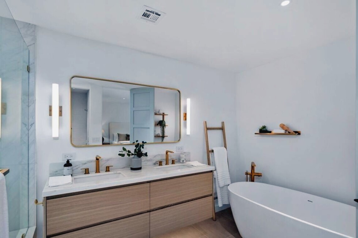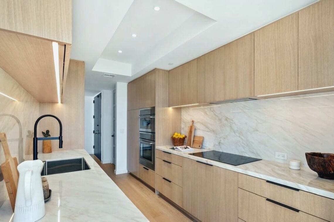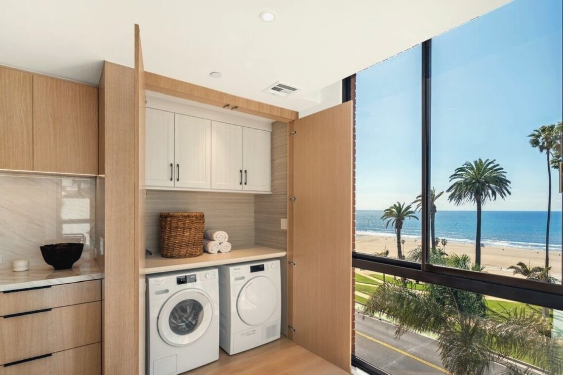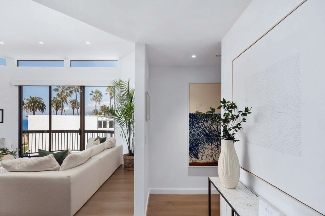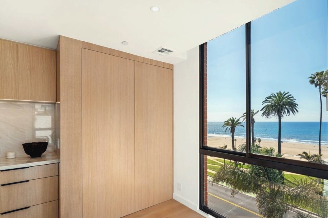 This two bedroom, two bathroom penthouse condo offers nearly 1,400 square feet of newly remodeled living space with sweeping views of the Pacific and Palisades Bluffs. The open ocean-facing living and dining area features floor-to-ceiling windows and new white oak flooring, while the kitchen includes custom cabinetry, Calacatta marble finishes, and premium appliances. The primary suite boasts a walk-in closet, spa-style bath, and freestanding tub. Set in a discreet, low-key building with side-by-side parking, the residence combines privacy and elegance with a prime Ocean Avenue location close to shopping, dining, and the best of Santa Monica.